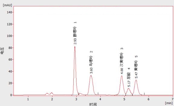 鳥嘌呤、腺嘌呤、黃嘌呤、次黃嘌呤及尿酸