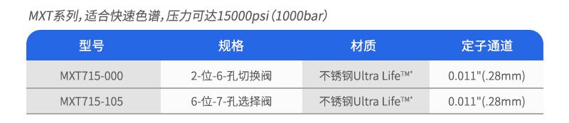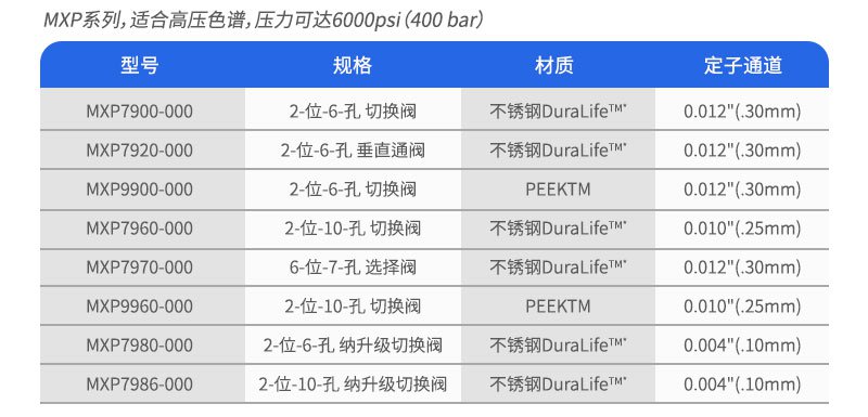 代理Rheodyne品牌進樣閥及定量管,提供原裝不銹鋼定量管及連接配件,適配各類色譜系統。配合自主研發77251不銹鋼閥(耐壓48MPa)、97251 PEEK生化閥(耐pH0-14)及70系列高壓切換閥,形成完整進樣解決方案,滿足從常規分析到制備色譜的全方位需求。