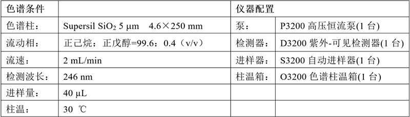 依利特新款的EClassical 3200液相色譜儀搭配經(jīng)典的Supersil SiO2色譜柱,對飼料中維生素D3進(jìn)行分析,峰形對稱性好,分離度高,滿足定性定量分析的需求