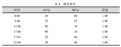 流動相:A: 甲醇;B:0.02mol/L 乙酸銨溶液