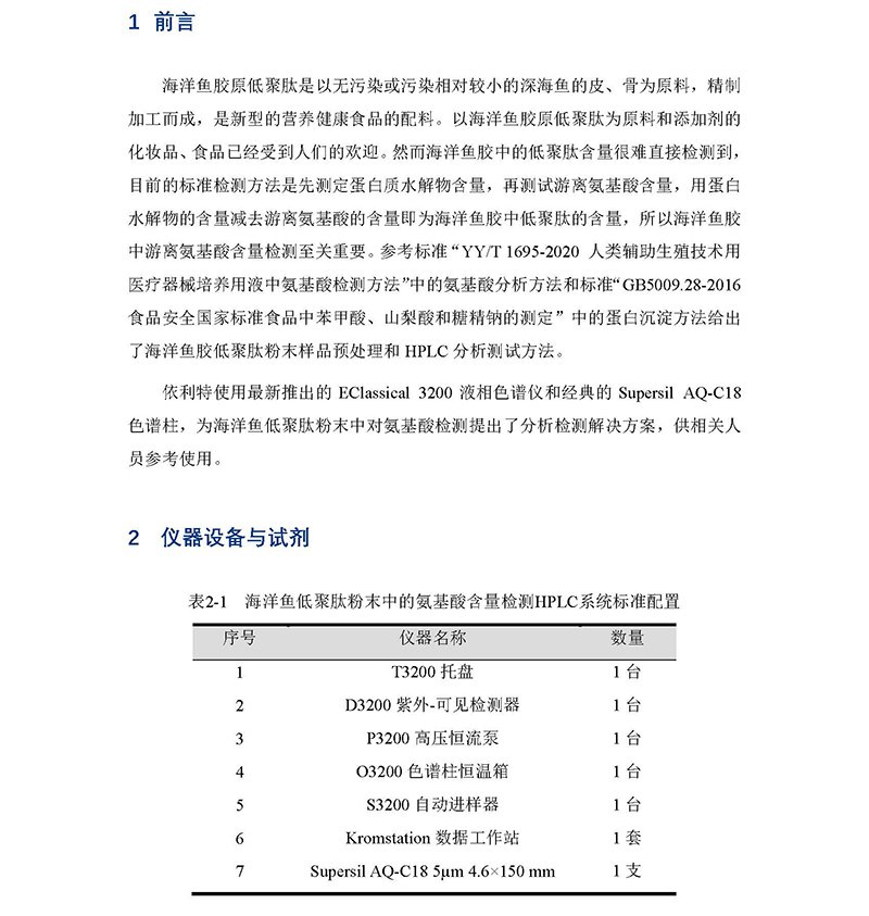 柱前-在線衍生法檢測海洋魚 膠中氨基酸含量 解決方案