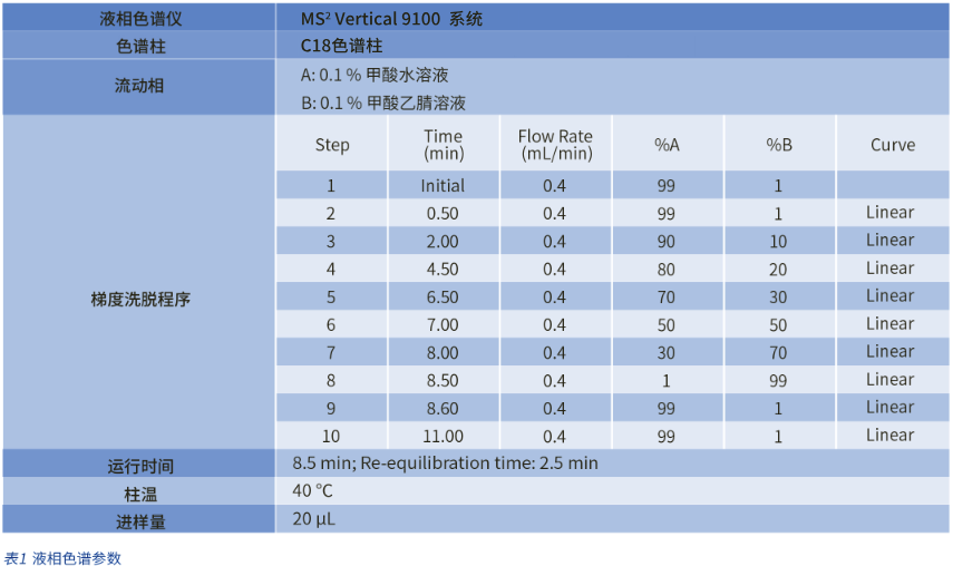 液相色譜和質譜參數分別參見表 1、2 和 3