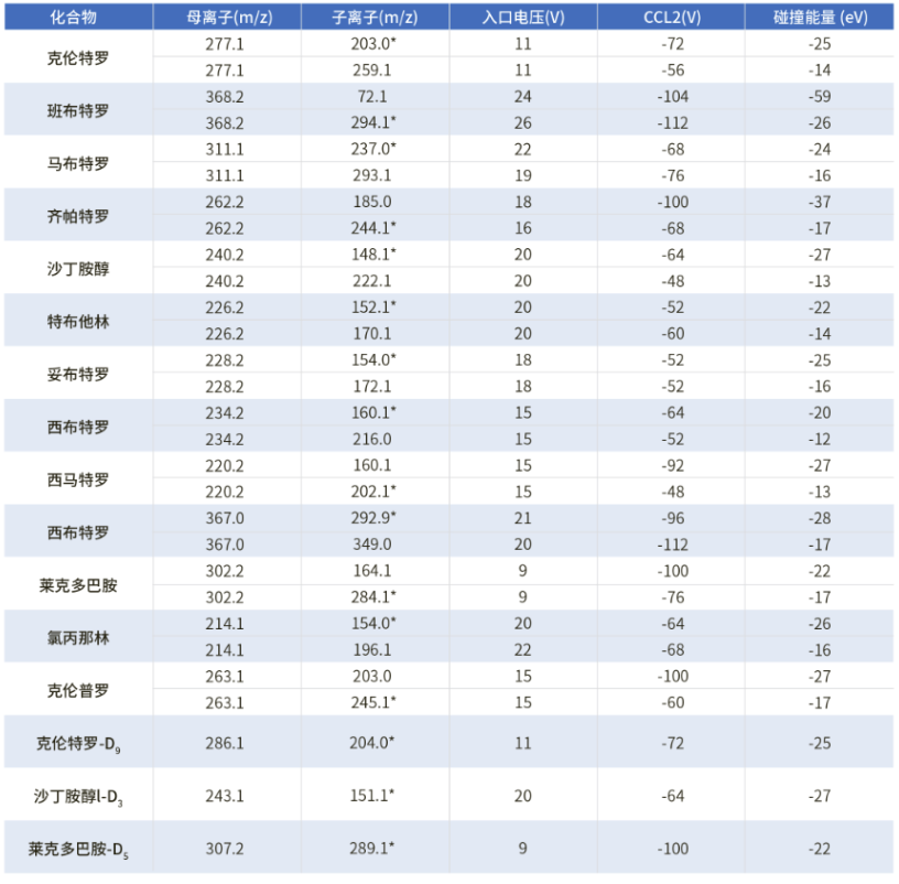 [1. 前處理方法參考 GB/T22286-2008《動物源性食品中多種 β- 受體激動劑殘留量的測定 液相色譜串聯質譜法》。