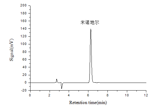 進樣分析濃度為20.0mg/L米諾地爾標準工作液,使用1.3.3中的色譜條件,結果如下圖所示。