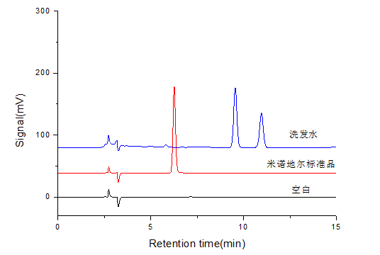 米諾地爾可用于治療脫發,目前的研究認為米諾地爾可以直接刺激毛囊上皮細胞增殖和分化;促進血管形成,增加局部血流量;開放鉀離子通道;使毛囊由休止期向生長期轉化。米諾地爾高濃度比低濃度療效好,但其引起的局部不良反應也較多,過量的米諾地爾會導致多毛癥,具有潛在危害,因此需要對洗發類樣品中的米諾地爾進行檢測。