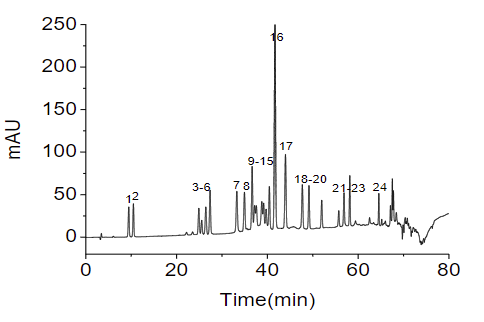 20μg/mL 24 種芳香胺混合標(biāo)準(zhǔn)溶液譜圖