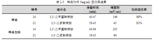 樣品測試過程中,應(yīng)保證其芳香胺含量在該線性范圍之內(nèi),若超出該范圍,需將樣品進(jìn)一步稀釋或濃縮。