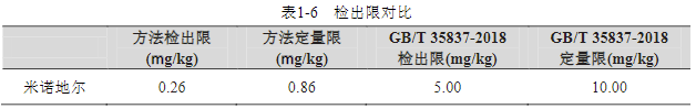 從以上結果可知,本系統的米諾地爾檢測的靈敏度明顯低于國標中的要求,即符合檢測要求。