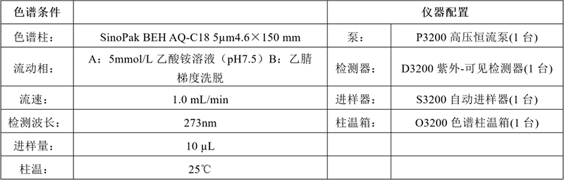 SinoPak BEH AQ-C18反相分離柱,在純水的條件下也可以完成分離分析,搭配依利特EClassical3200液相色譜儀對可可堿樣品進行分析,目標物峰形良好,柱效高,滿足定量分析的需求。