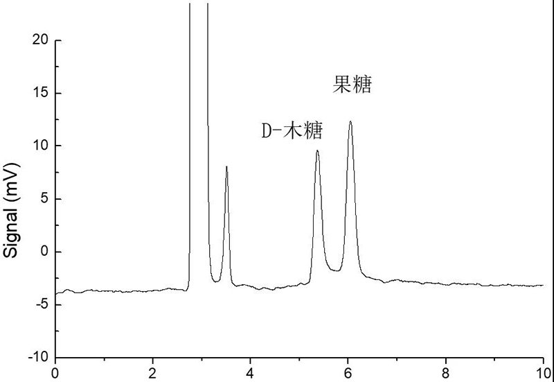 樣品溶液的配置:取D-木糖與果糖對照品,加流動相溶解并定量稀釋制成每1mL中約含D-木糖與果糖為1mg與0.2mg的系統適用性溶液。