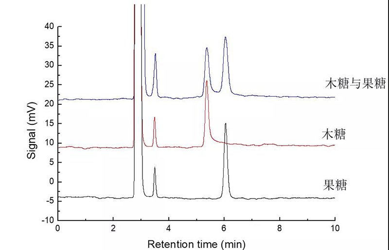 木糖是木聚糖的一個組分,木糖以大分子的木聚糖的形式廣泛存在于植物半纖維素中,用酸或酶使木聚糖降解獲得。木糖也存在于動物肝素、軟骨素和糖蛋白中,它是某些糖蛋白中糖鏈與絲氨酸(或蘇氨酸)的連接單位,藥典方法建議用氨基柱來分析檢測乳糖。依利特使用EClassical 3200液相色譜儀匹配新推出的Supersil NH2-S Plus色譜柱,對木糖的含量進行分析檢測,結果完全滿足藥典要求。