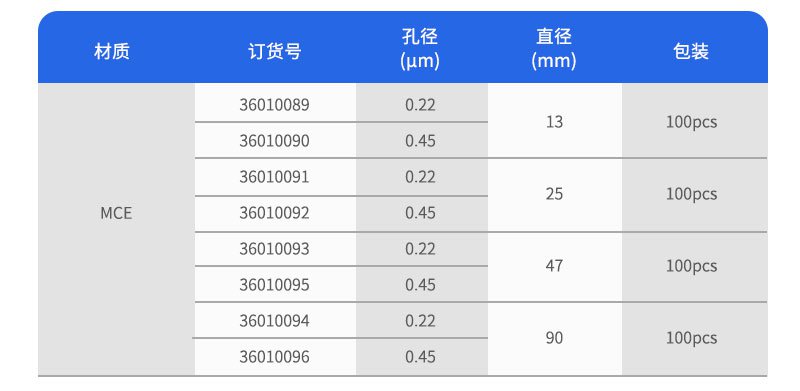 MCE系混合纖維素酯膜,是由硝酸纖維素(NC)和醋酸纖維素(CA)混合制成,他比純硝酸纖維素膜具有更好的平整性和均勻性,為檢測顆粒物和微生物提供了更好的顏色對比,具有更低的醋酸纖維素含量,以及更加的生物相容性。