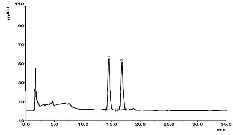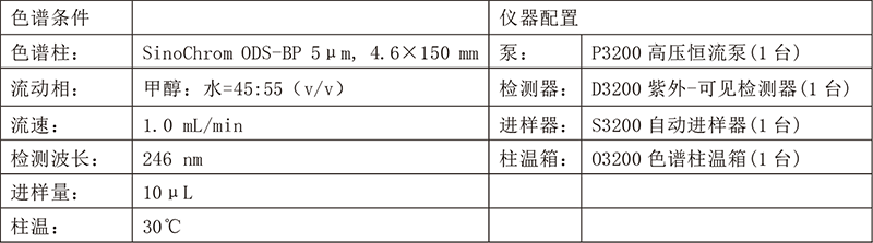 依利特新款的EClassical 3200液相色譜儀搭配經(jīng)典的SinoChrom ODS-BP色譜柱,對白蝕丸中的補骨脂素和異補骨脂素成分進行分析,柱效高,分離度好,滿足定性定量分析的需求。