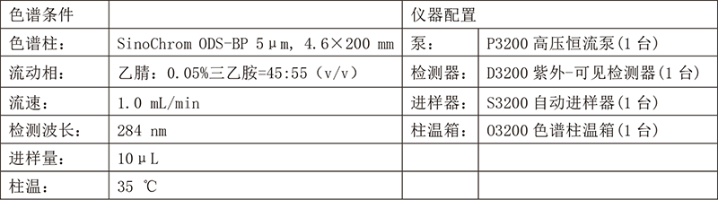 依利特新款的EClassical 3200液相色譜儀搭配經典的SinoChrom ODS-BP色譜柱,對北豆根膠囊中的蝙蝠葛堿成分進行分析,柱效高,分離度好,滿足定性定量分析的需求。