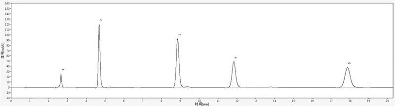 第400針的各峰的拖尾因子與第1針的各峰的拖尾因子比較。1號、2號和5號峰拖尾因子數(shù)據(jù)依然保持非常好,而3號峰和4號峰從數(shù)據(jù)上看拖尾因子略有變大,從譜圖上看也能看出3號峰和4號峰似乎有新雜質(zhì)檢出。同一根色譜柱,1號、2號和5號峰拖尾因子數(shù)據(jù)非常好,而3號峰和4號峰數(shù)據(jù),從不拖尾變成有點拖尾,有可能的原因是該實驗持續(xù)時間比較長,而在這么長的時間內(nèi),3號峰和4號峰樣品本身不穩(wěn)定,出現(xiàn)了新的雜質(zhì)造成。