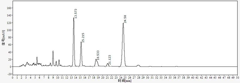 Supersil ODS2色譜柱,具有優異的分離能力,再搭配依利特新款的EClassical3200液相色譜儀,分析丹參酮樣品,目標物峰形良好,滿足定量分析的需求。